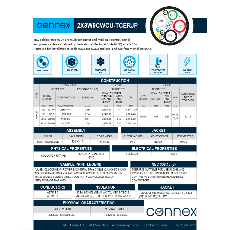 Tray cables rated 600V are multi-conductor and multi-pair control, signal and power cables as defined by the National Electrical Code (NEC) article 336. Approved for installation in cable trays, raceways and one- and two-family dwelling units.
